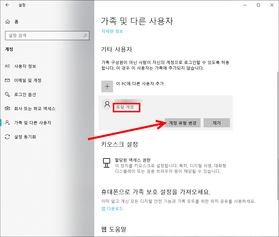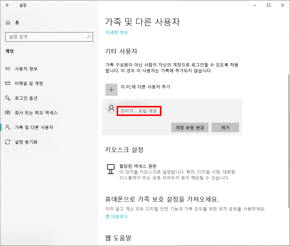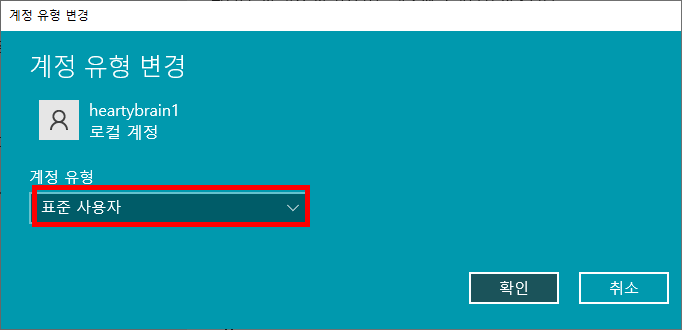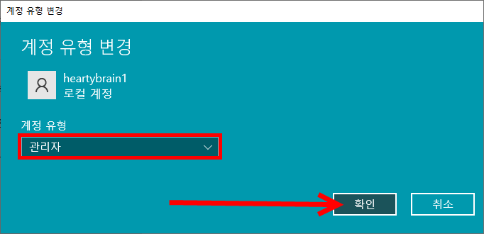 표준 사용자 유형에서 관리자 유형으로 변경하는 방법