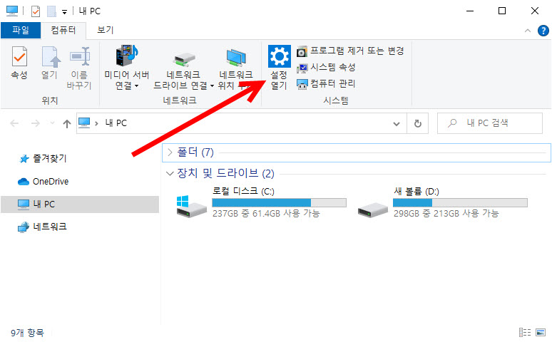 1)내 컴퓨터에서 설정 열기를 클릭한다.