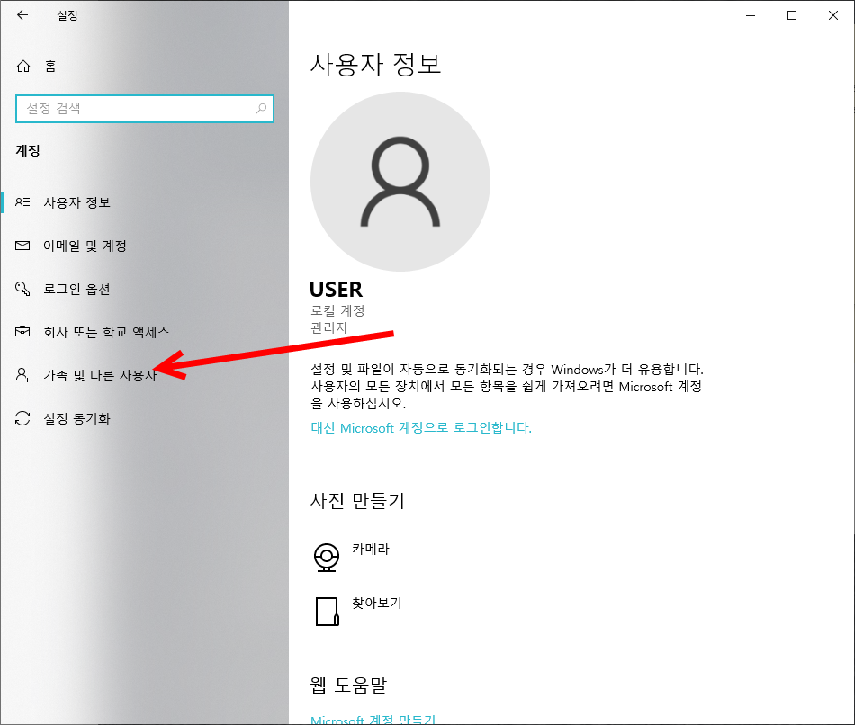 3)가족 및 다른 사용자로 이동한다.