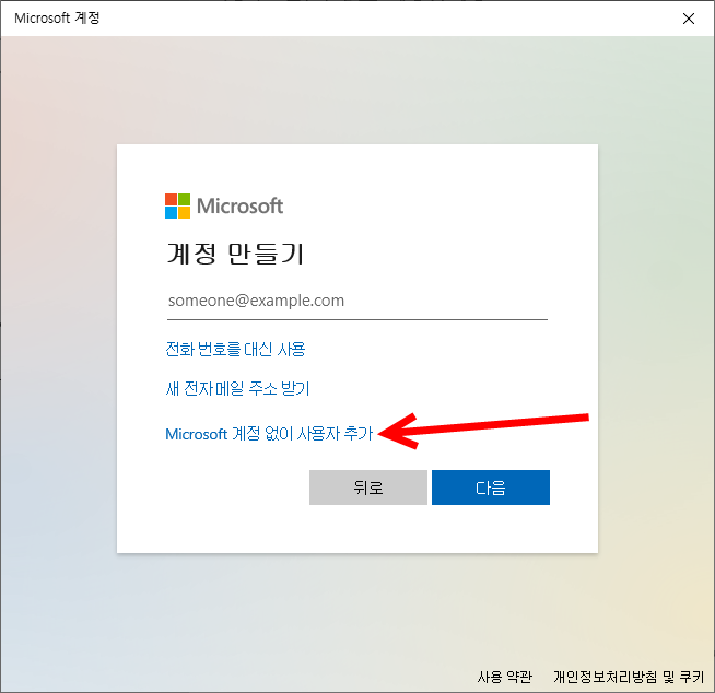 6)마이크로소프트 계정없이 사용자 추가를 선택한다.