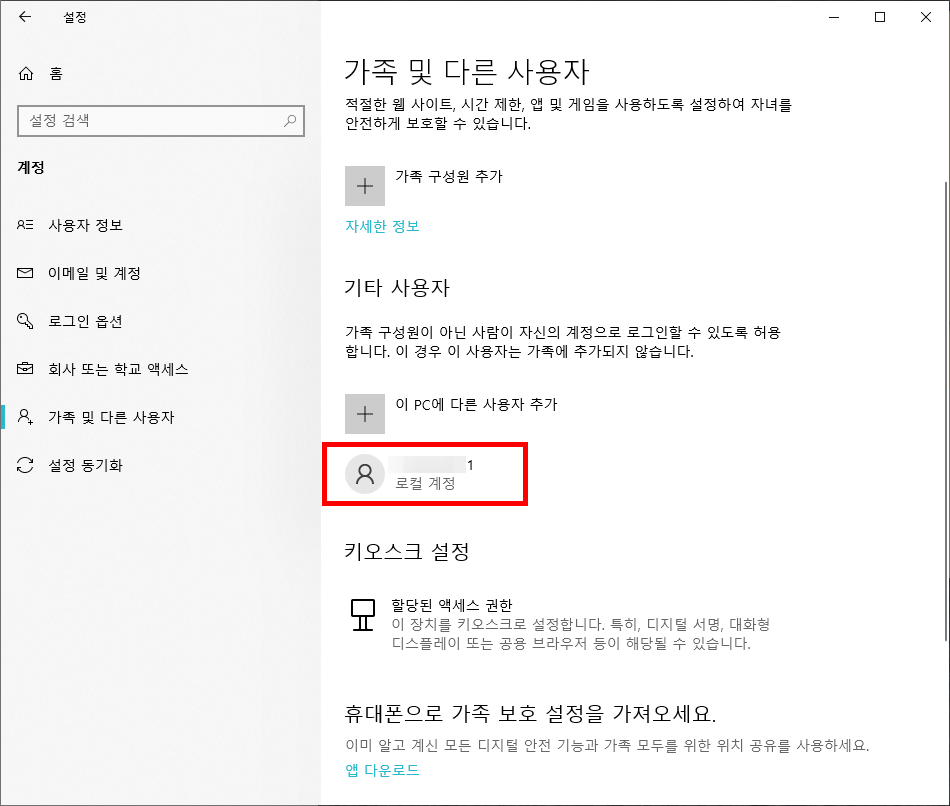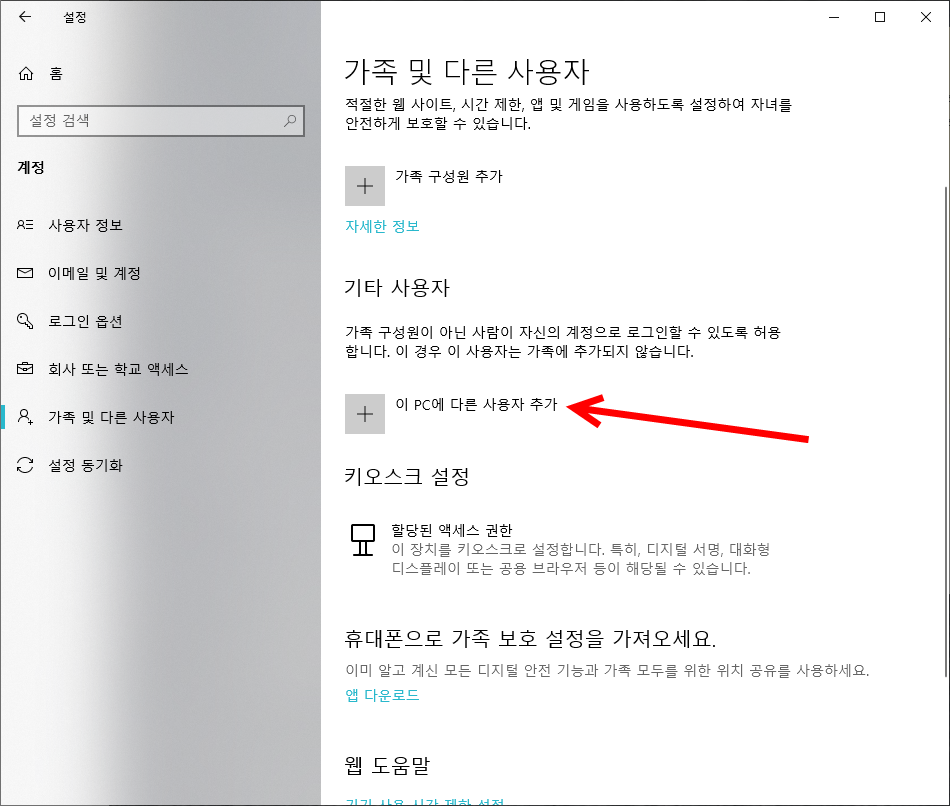 4)기타 사용자에서 이 PC에 다른 사용자 추가로 이동한다.