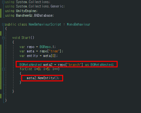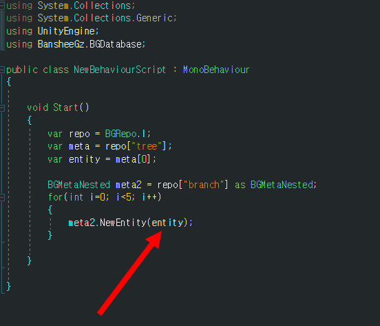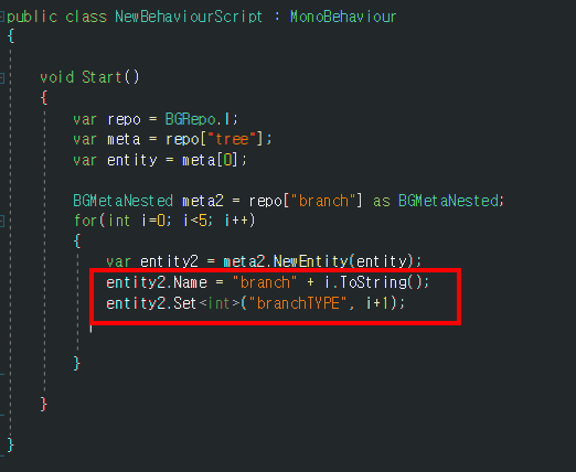 5)branch 테이블(nested meta)에 새로운 entity를 생성하려면 BGMetaNested.NewEntity 함수를 사용한다.
