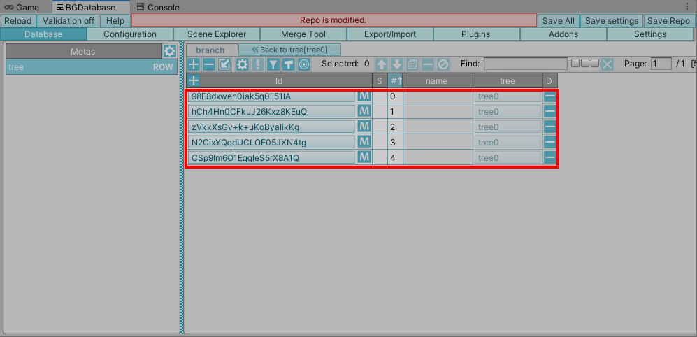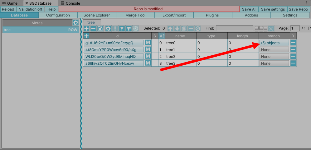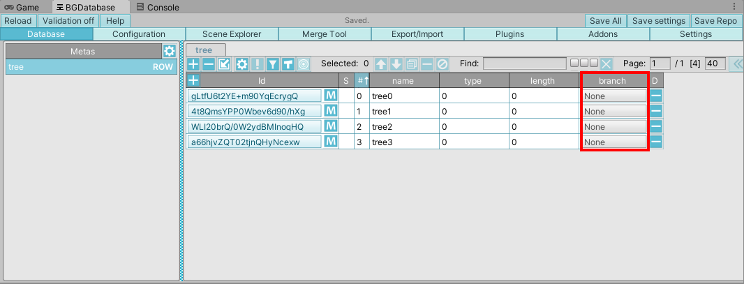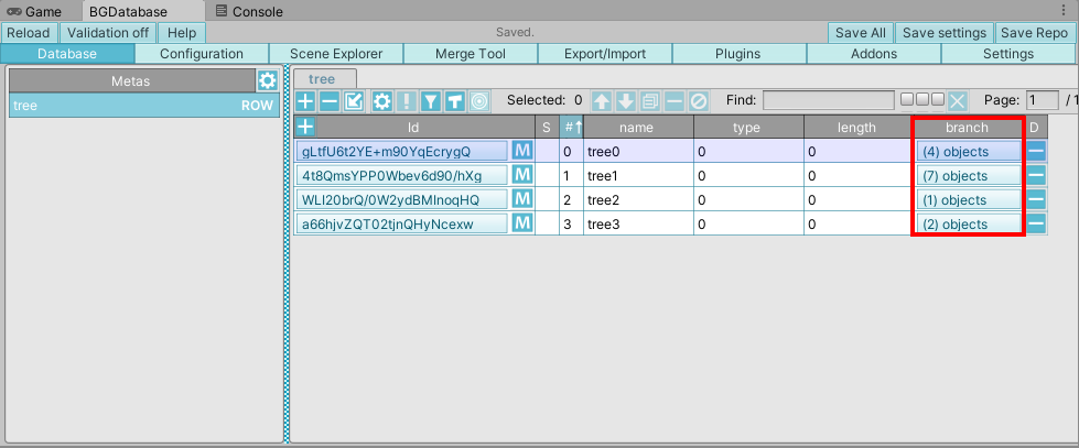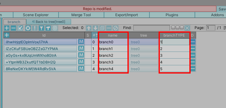 8)게임을 실행하면 tree 테이블 첫번째 행의 nested 필드(branch)에 대한 값이 추가된것을 확인할수있다.