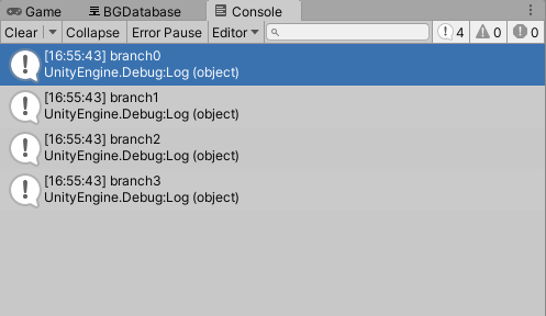 6)게임을 실행하고 데이터베이스를 확인한다. branch 테이블에 새로 추가된 entity를 확인할수없다.