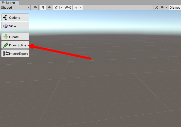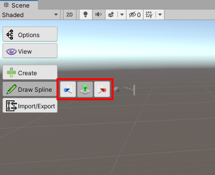 1)씬에 새로운 스플라인을 생성하기위해서 scene view의 좌측 상단 curvy toorbar ui에서 draw spline을 선택한다.