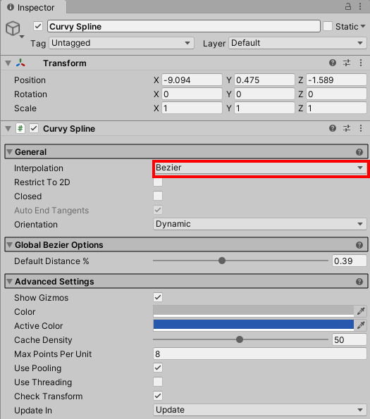 유니티 에셋 curvy - 스플라인 생성하기(draw spline)