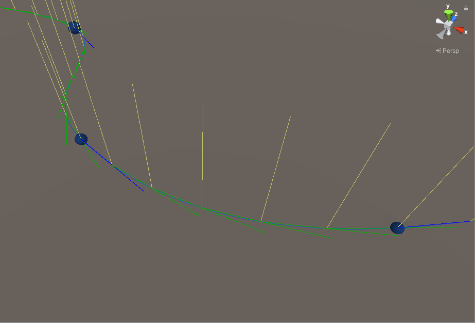 11)스플라인의 orientation 및 tangents가 표시되는것을 확인할수있다.