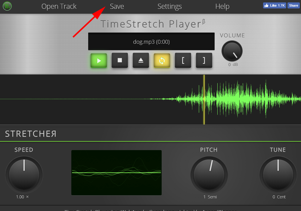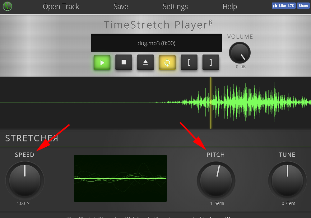 TimeStretch Player is a free online audio player that allows you to loop, speed up, slow down and pitch shift sections of an audio file.