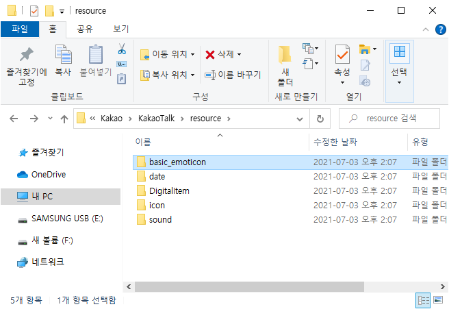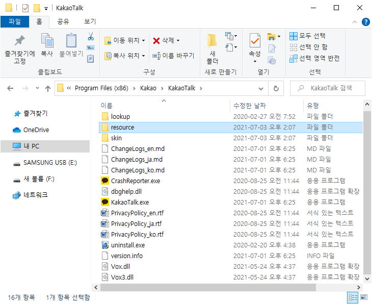 1)카카오톡 설치 폴더에서 resource 폴더로 이동한다.