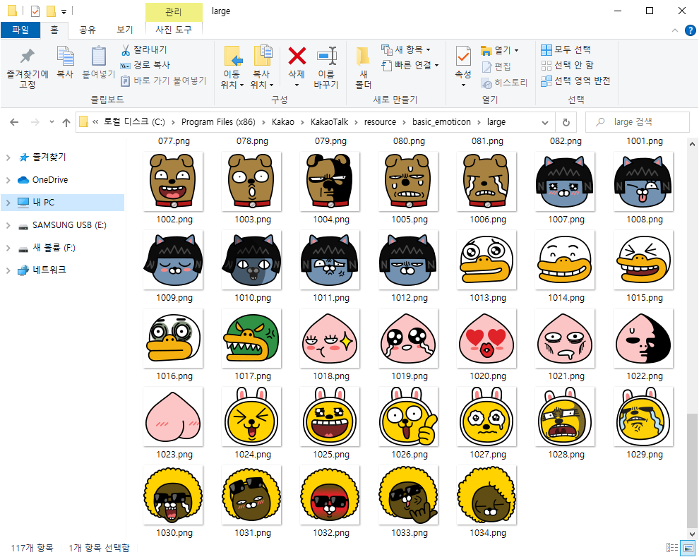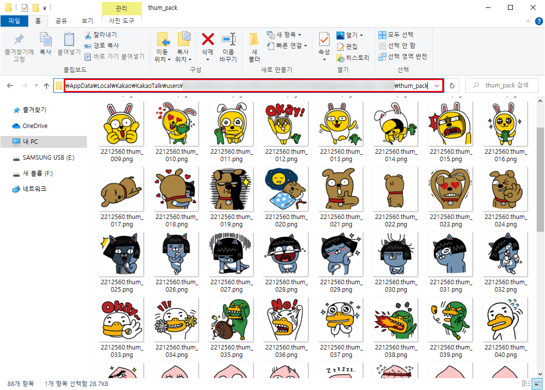 컴퓨터에서 카카오톡 이모티콘 이미지 파일의 위치