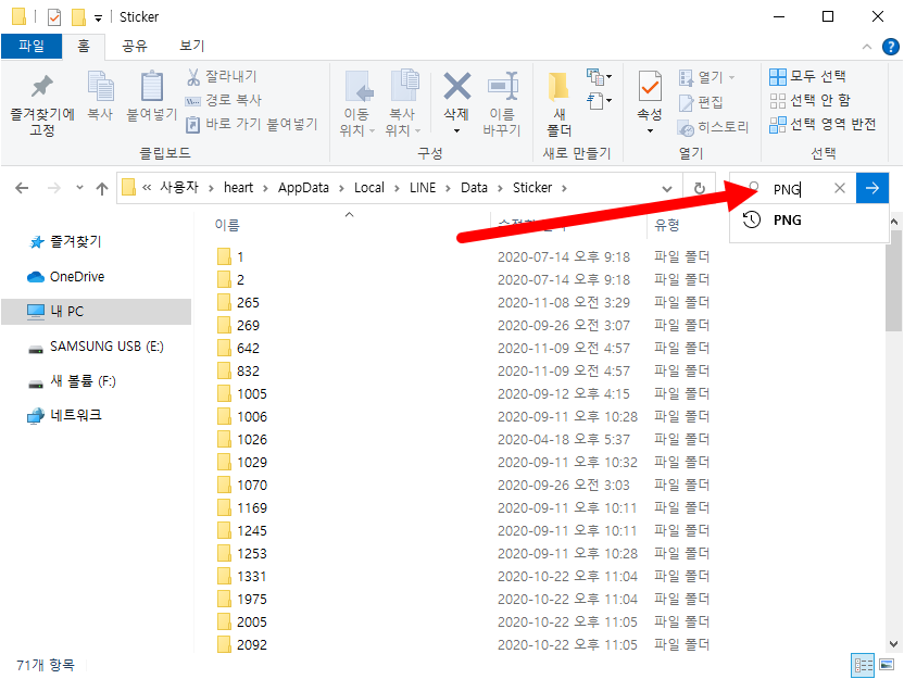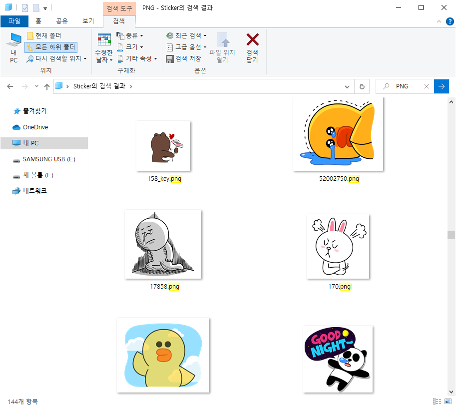 2)Sticker 폴더내에서 PNG 파일을 검색한다.