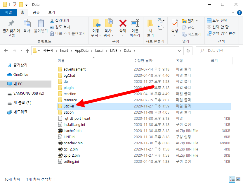 컴퓨터에서 라인(LINE) 이모티콘 이미지 파일 위치