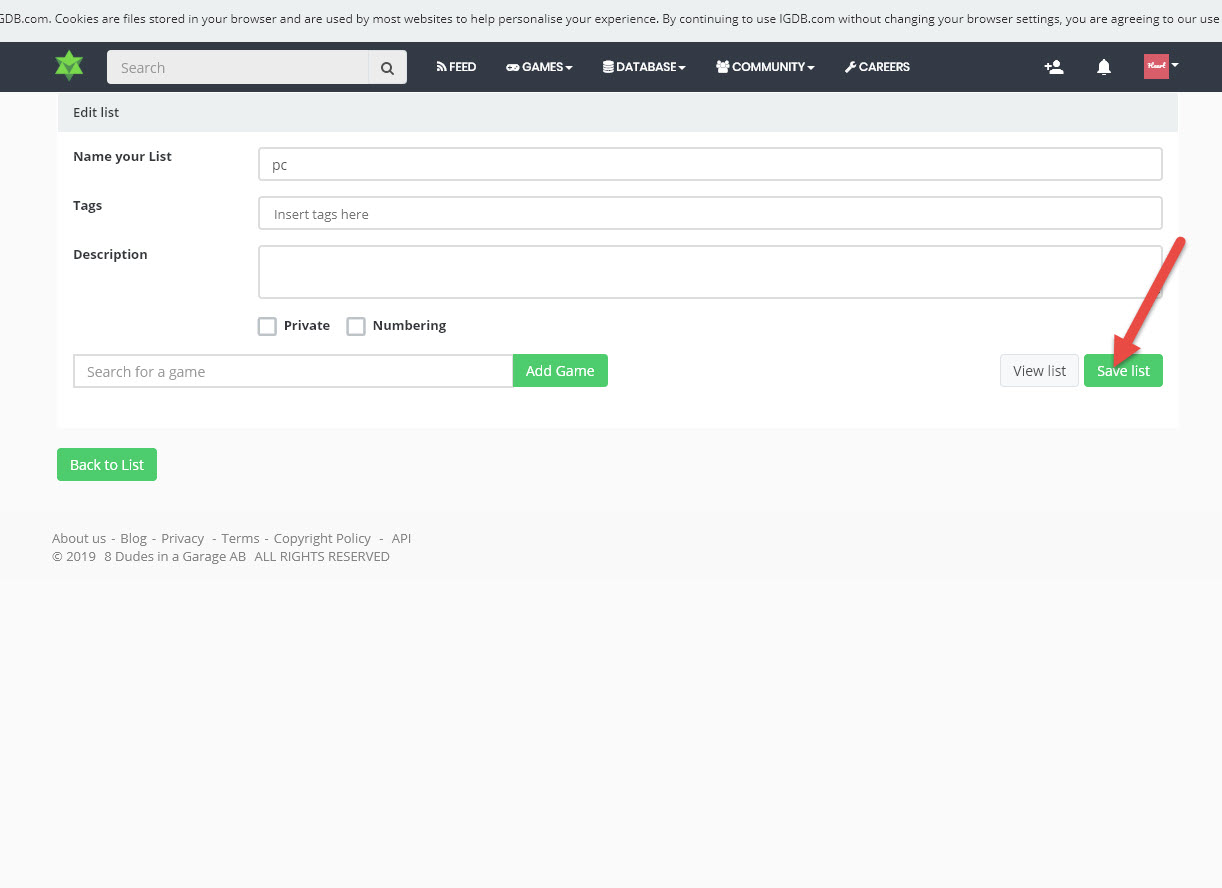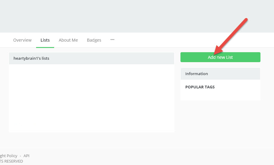3)새로운 게임 리스트를 추가하기위해 add new list를 클릭한다.