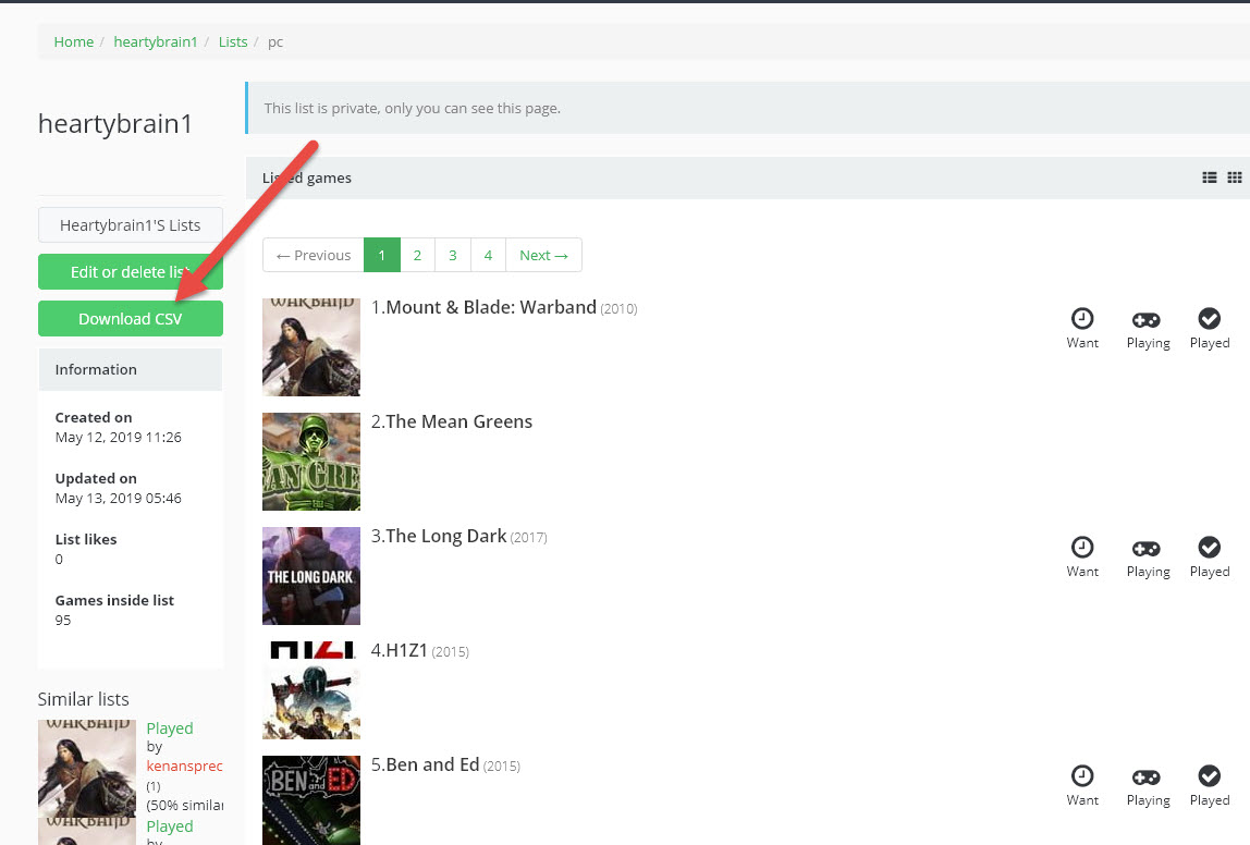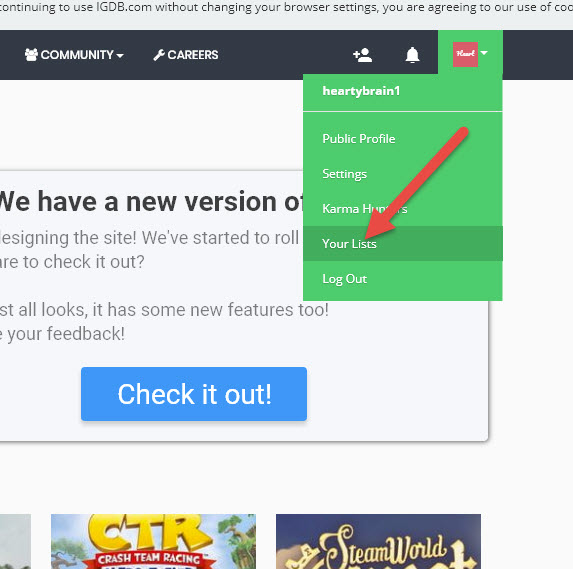 3)새로운 게임 리스트를 추가하기위해 add new list를 클릭한다.
