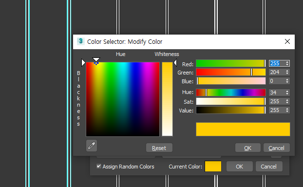 9)분리시킨 오브젝트에 중앙 차선의 색상을 설정한다.