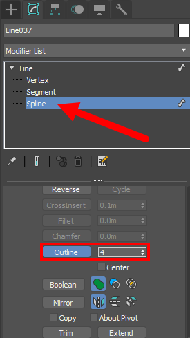 4)라인의 spline을 선택하고 outline을 사용하여 오프셋된 스플라인을 생성한다.