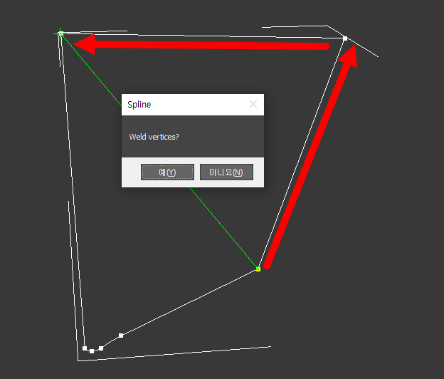 8)create line을 사용하여 닫힌 스플라인으로 만든다.