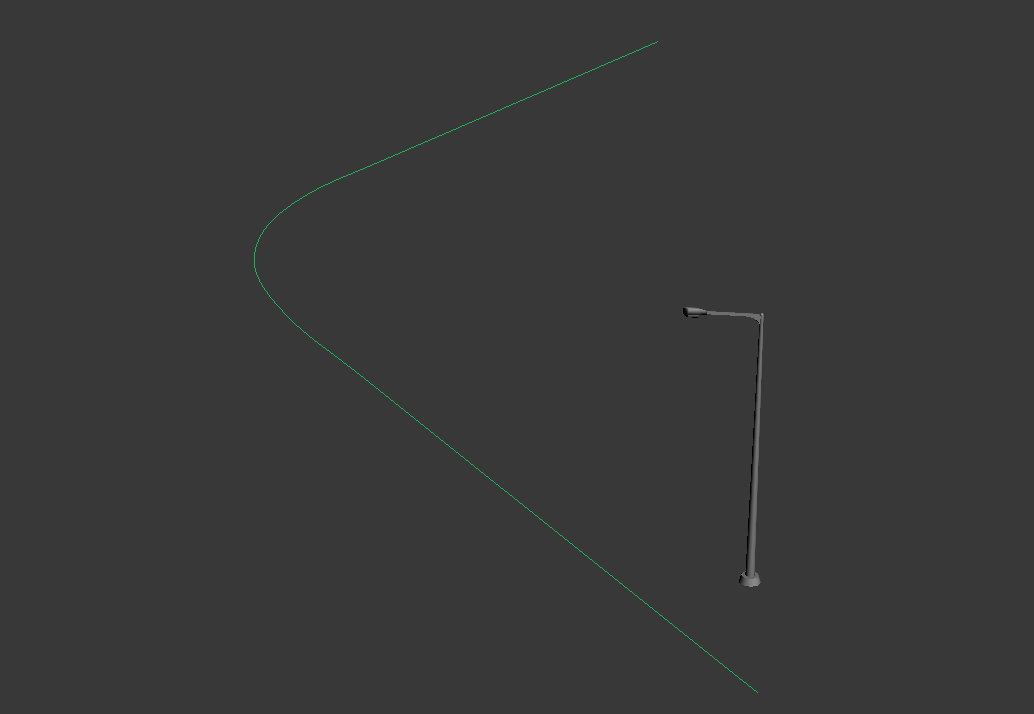 1)가로등 오브젝트와 path로 사용할 스플라인 오브젝트를 준비한다.