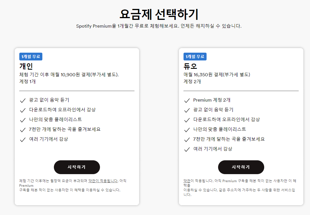 스포티파이(spotify) 프리미엄 멤버십 구매 및 서비스 이용