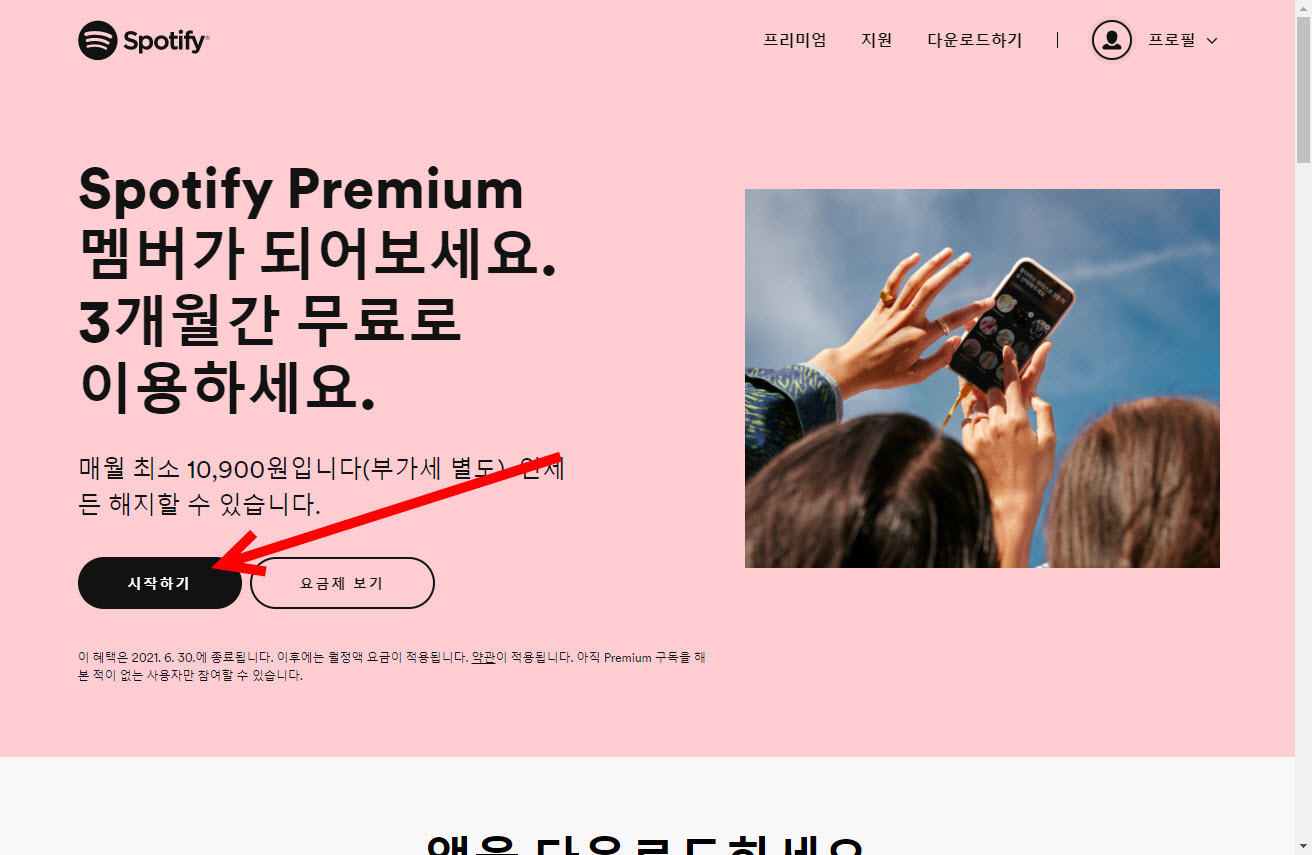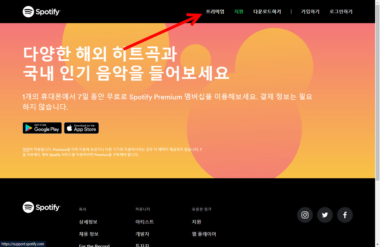 1)스포티파이 웹사이트에서 프리미엄 메뉴로 이동한다.