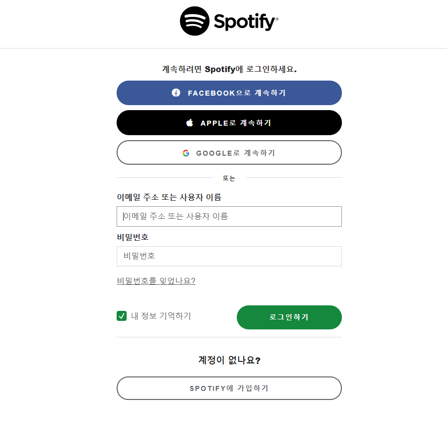 3)스포티파이에 계정 로그인한다. 계정이 존재하지않으면 스포티파이 회원가입을 진행한다.