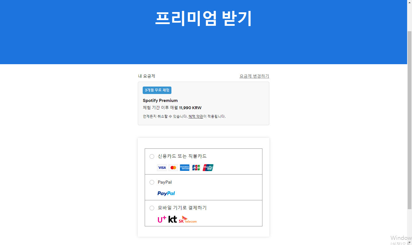 스포티파이 회원가입 및 프리미엄 요금 결제하기