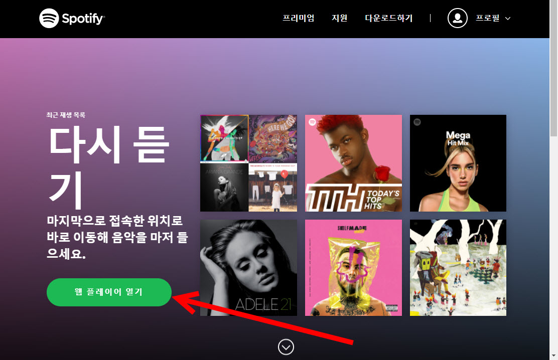 스포티파이 서비스 이용하기(웹 플레이어)