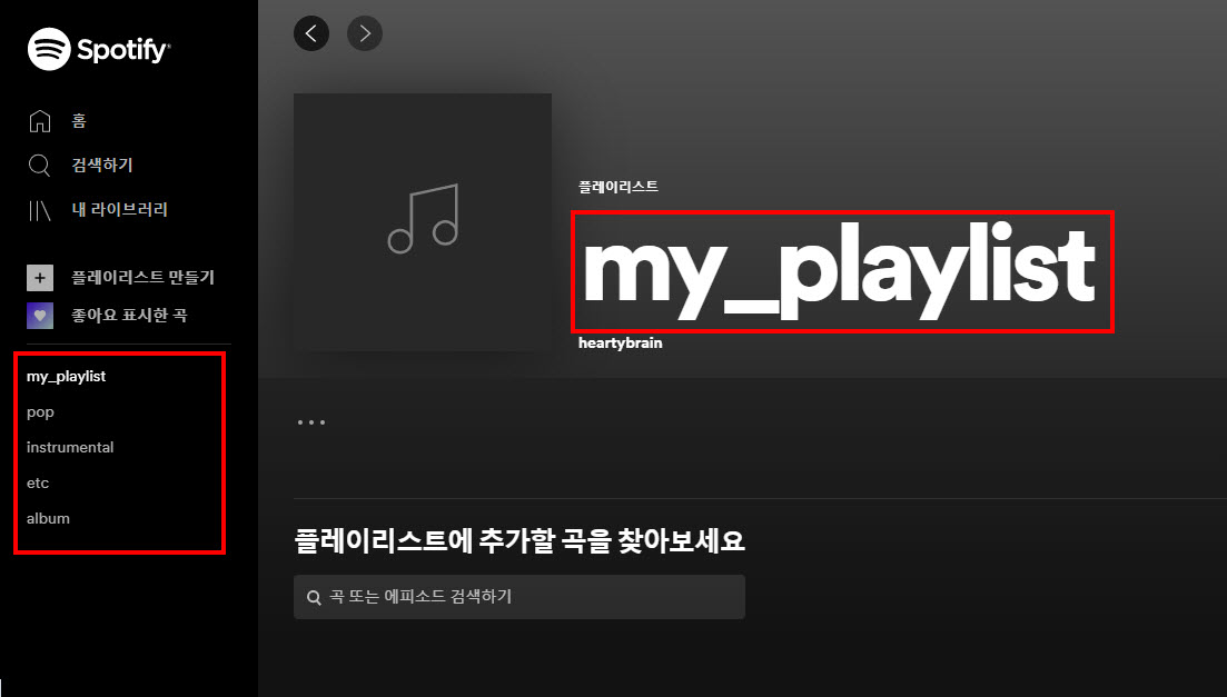 10)플레이리스트의 이름을 설정한다. 좌측에서 추가한 플레이리스트 목록을 확인할수있다.