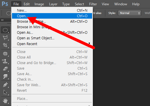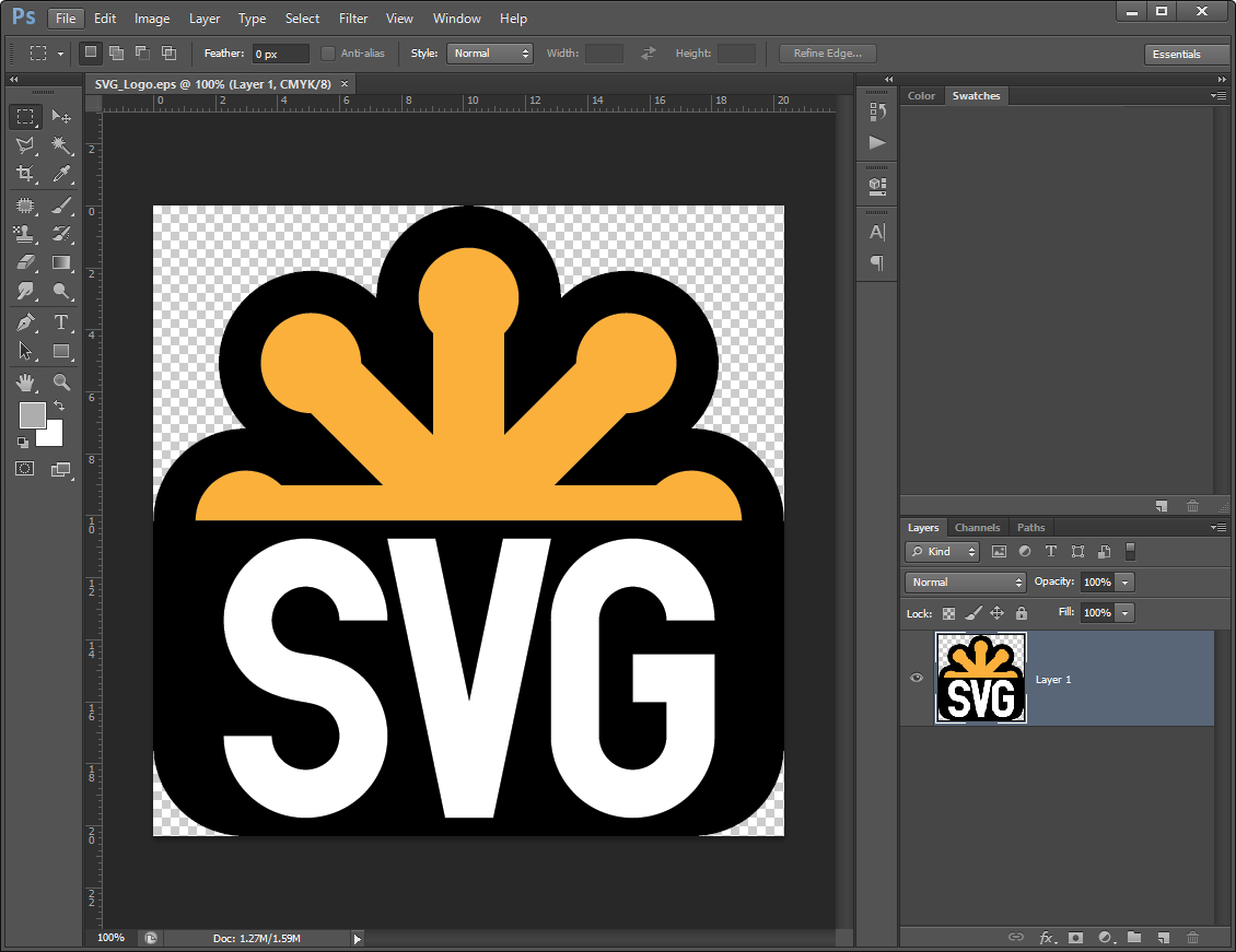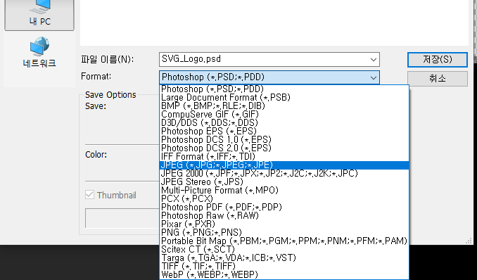 1)일반적으로 포토샵에서 svg 형식의 파일을 열기 불가능하다.