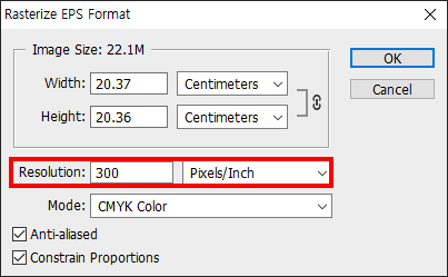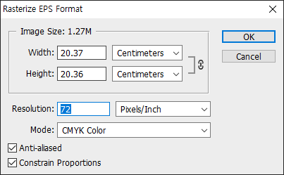 10)파일을 불러오기할때 rasterize EPS format에서 resolution 수치를 높이면 이미지의 해상도를 높일수있다.