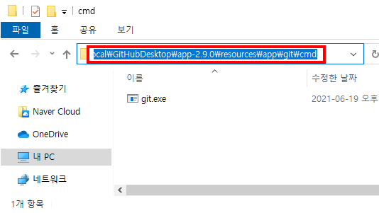 5)설치 폴더 하위에 있는 \resources\app\git\cmd 경로에서 git.exe 파일을 확인할수있다.