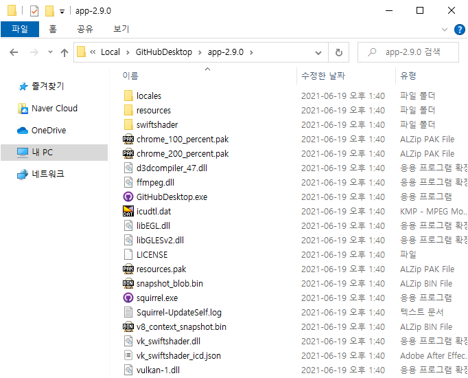 4)깃허브의 설치 폴더에서 해당 버전의 폴더로 이동한다.