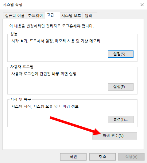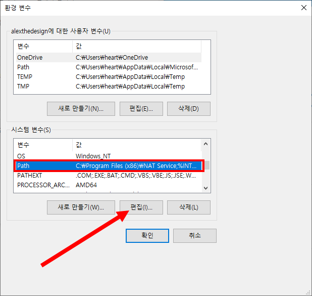 9)시스템 변수의 path 를 선택 및 편집으로 이동한다.