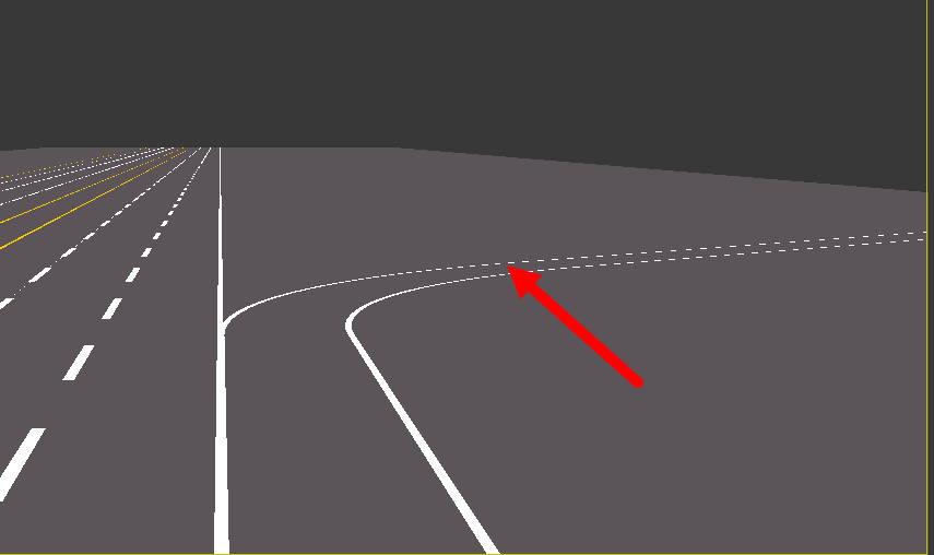 2)카메라 뷰에서 도로의 폭이 좁아 보이는것을 확인할수있다.