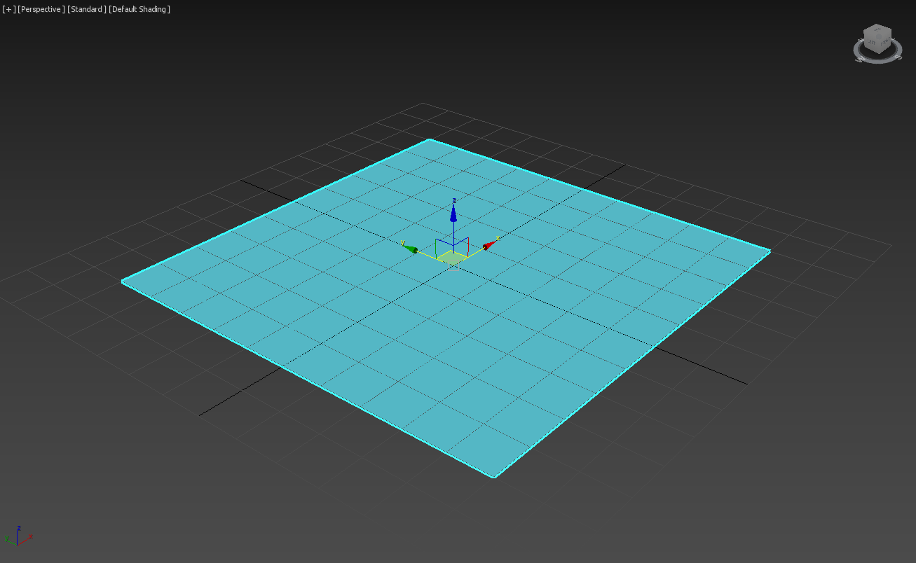 3)3D맥스에서 가로, 세로 길이가 동일한 plane 오브젝트를 생성한다. 오브젝트를 원점에 위치시킨다(0, 0, 0)