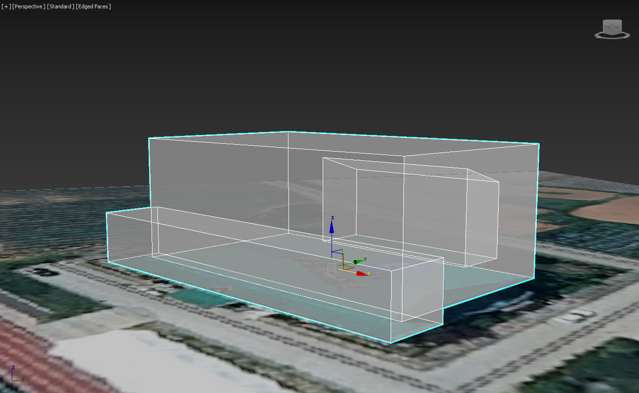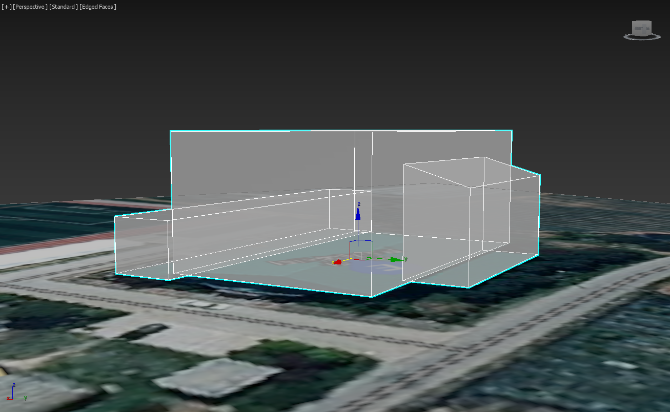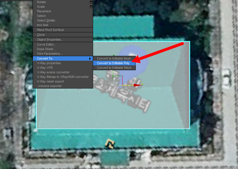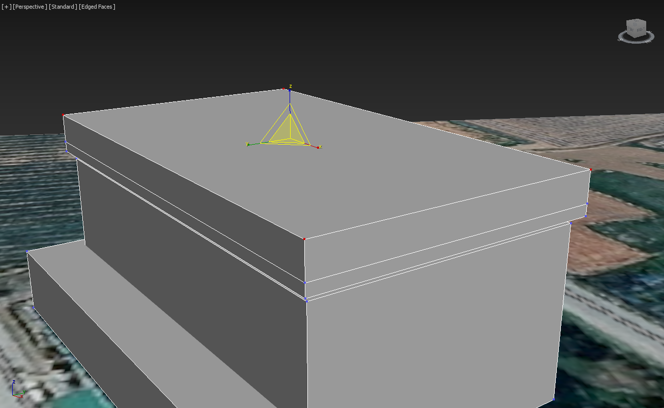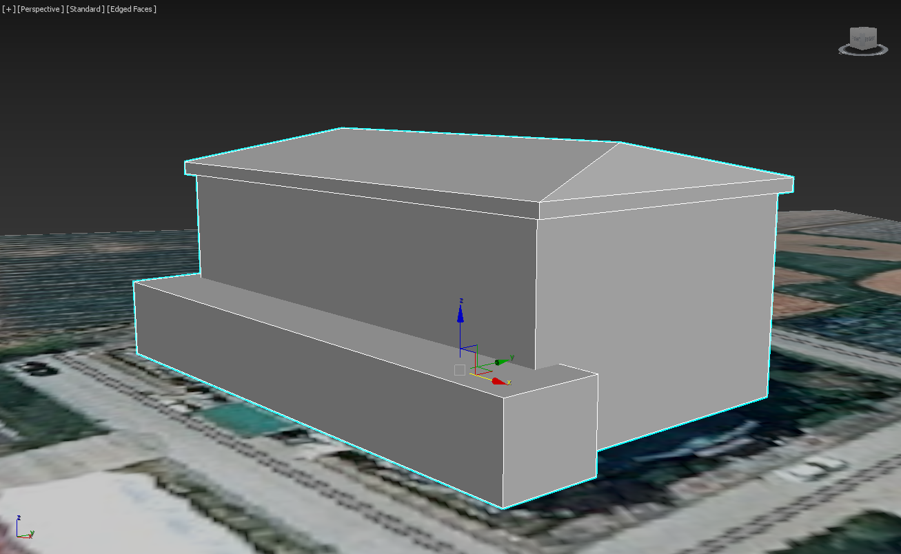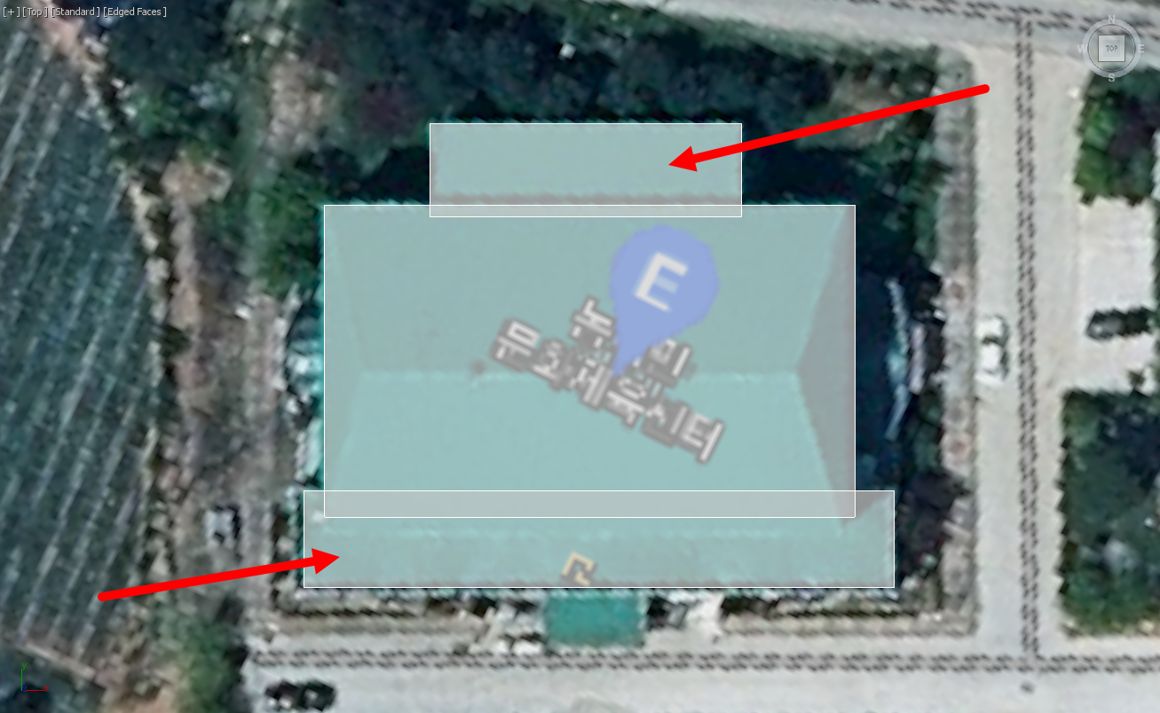 4)위성사진에서 건물의 외곽을 확인하고 editable poly의 정점 위치를 수정한다.