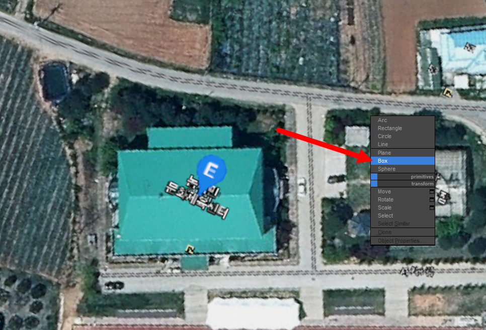 16)위성사진과 로드뷰, top view, perspective view를 확인하면서 건물을 입체적으로 모델링한다.