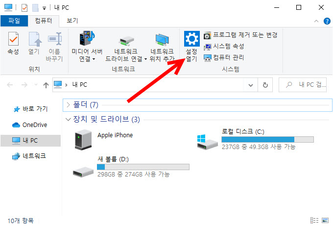 1)내 컴퓨터에서 설정으로 이동한다.