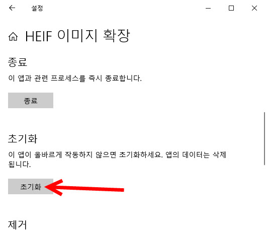 윈도우10의 기본 앱이 올바르게 작동하지 않는경우 초기화할수있다(이 작업은 앱의 데이터를 삭제한다)