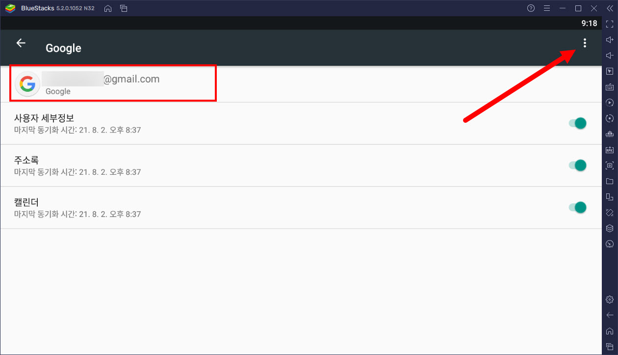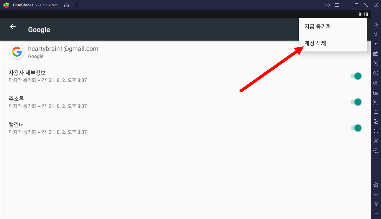 블루스택(BlueStacks)에서 구글 계정 로그아웃하기