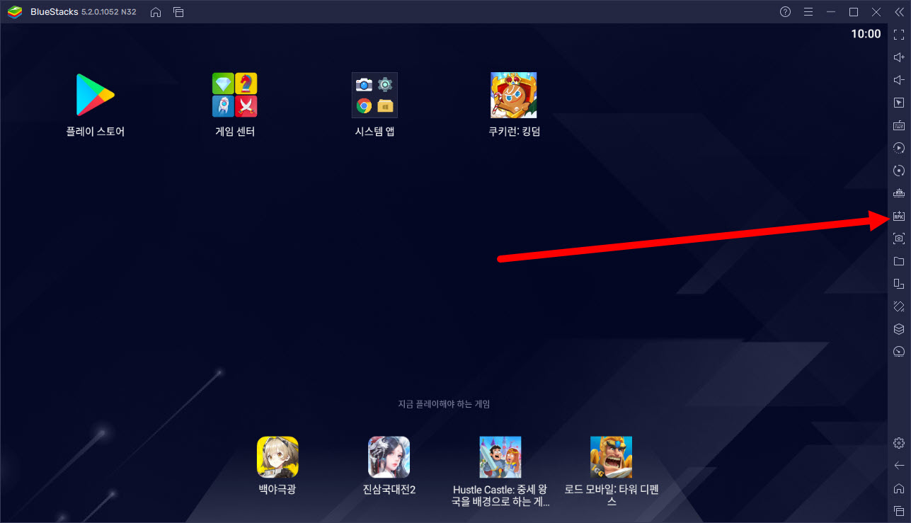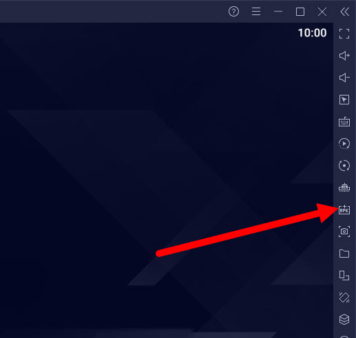 1)블루스택 홈의 우측에서 apk설치 아이콘을 클릭한다.