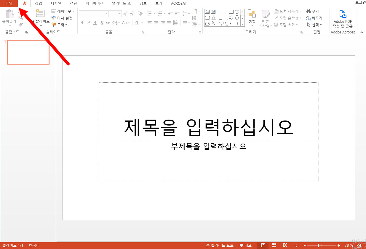 1)상단의 파일 메뉴로 이동한다.