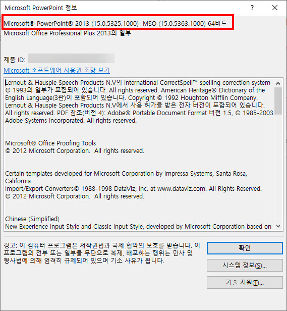 파워포인트 버전 확인하기