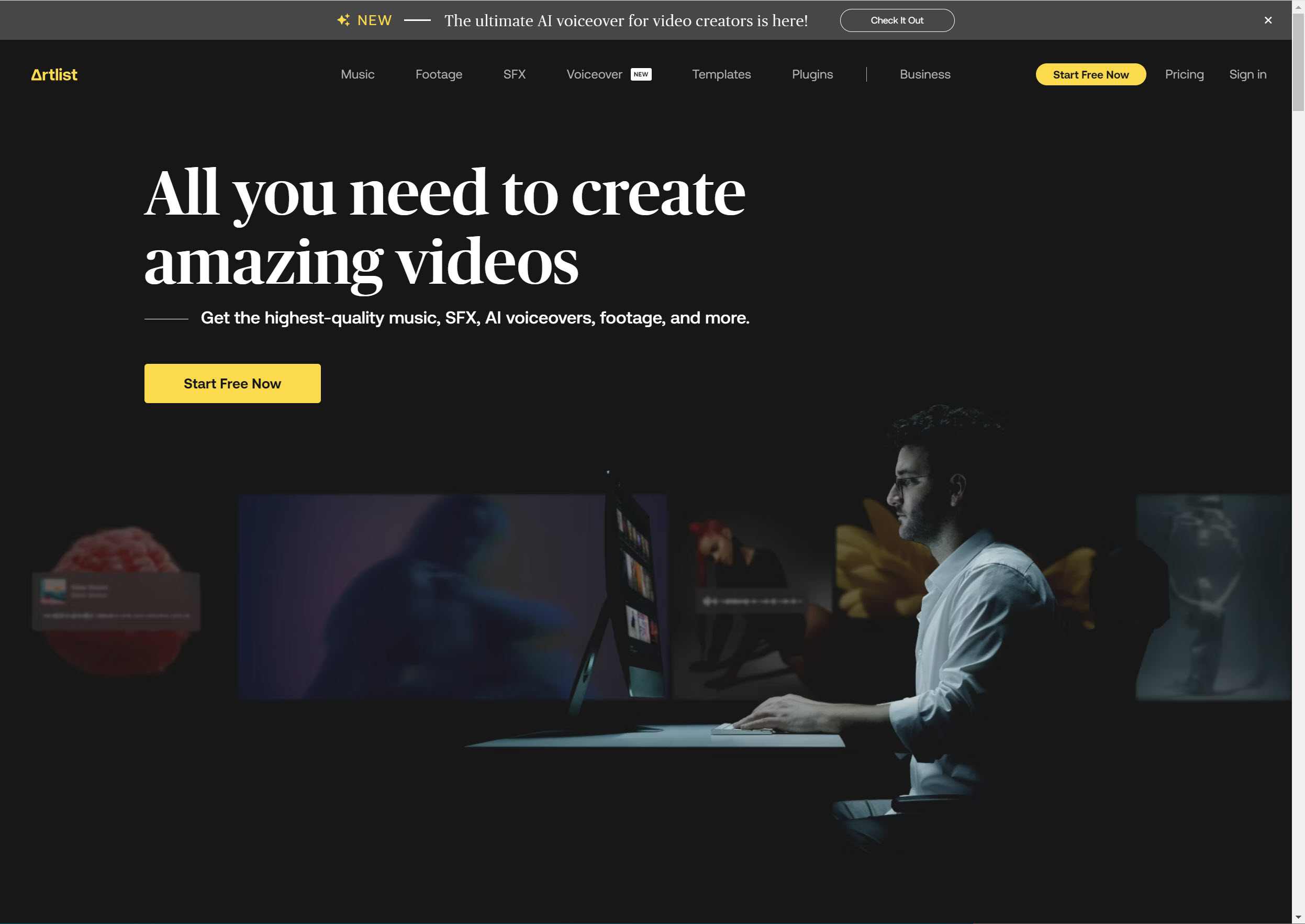 영상 제작자 및 크리에이터들에게 인기가 높은 유료 구독 기반의 음악 및 효과음 플랫폼으로 상업적 프로젝트에 적합한 다양한 고품질 트랙을 제공합니다.