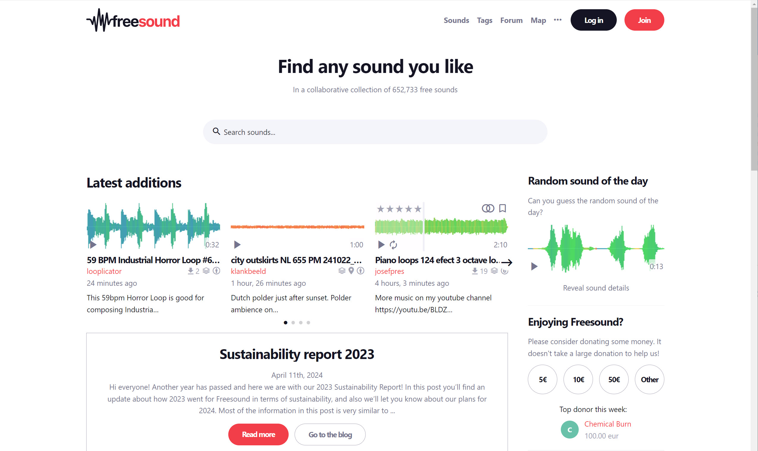 사용자들이 업로드한 다양한 효과음 및 사운드를 무료로 다운로드하고 사용할 수 있는 커뮤니티 기반의 사이트