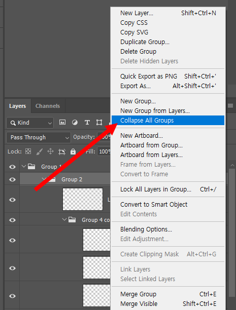 4)전체 레이어 그룹이 닫힌 상태가 된것을 확인할수있다.