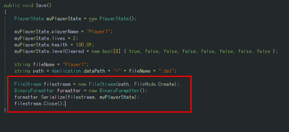 유니티에서 객체를 바이너리로 저장하기(BinaryFormatter)