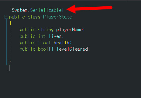 2)클래스에 [Serializable] 어트리뷰트를 지정한다.