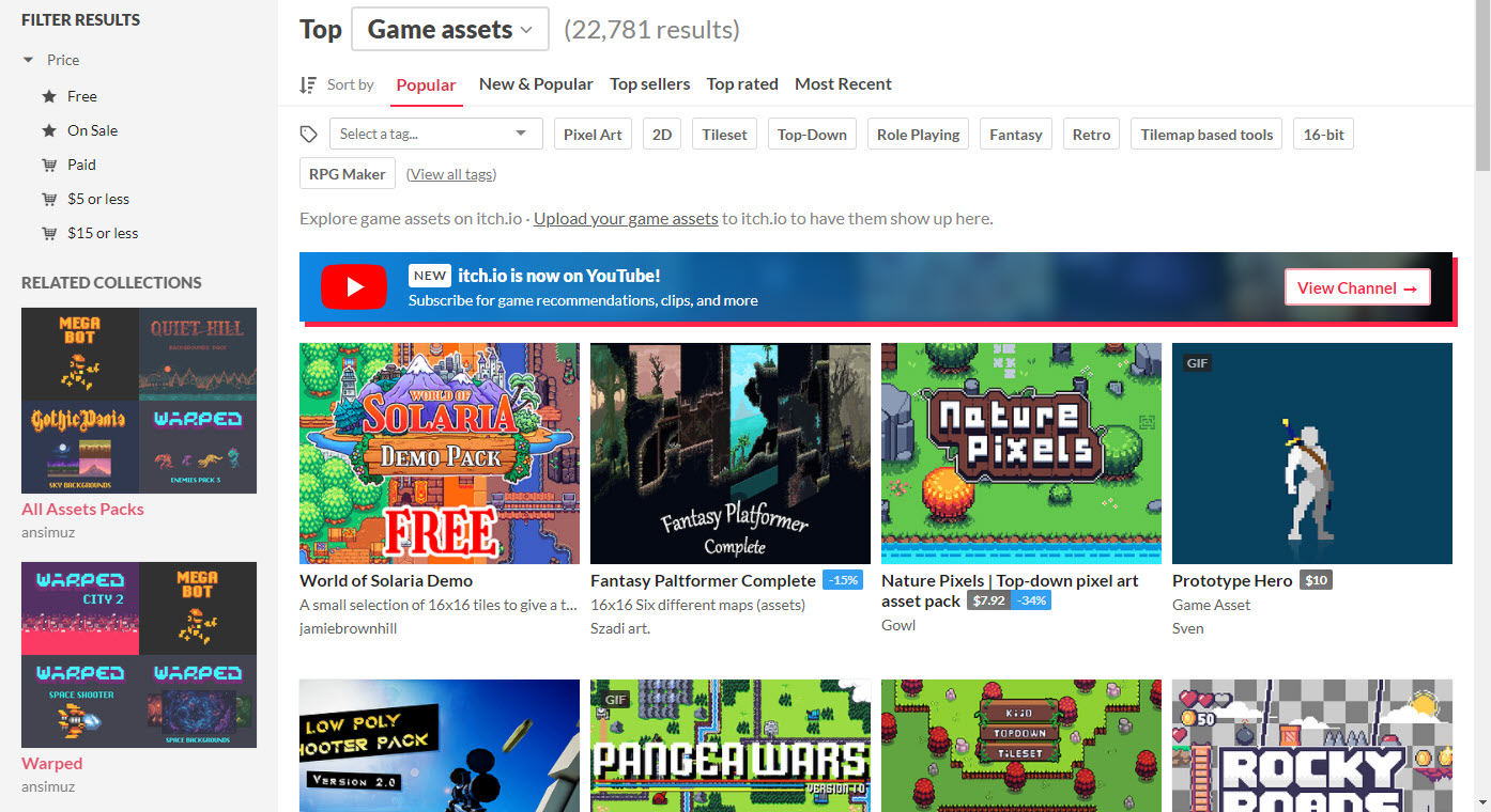 게임 외에도 게임 제작도구(tools), 게임에셋(game assets), 만화(comics) 사운드트랙(ost) 기타 다양한 종류의 창작 콘텐츠를 판매 및 구매할수있다.