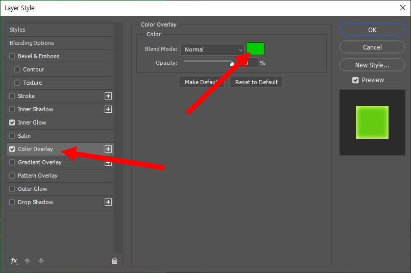 14)원형 이미지의 layer style에서 color overlay를 설정한다.